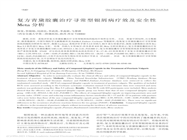 由西安交通大學(xué)第二附屬醫(yī)院皮膚科鄭雯、馬慧群等專家負(fù)責(zé)研究并撰寫的《復(fù)方青黛膠囊治療尋常型銀屑病療效及安全性Meta分析》一文發(fā)表在《中國(guó)中西醫(yī)結(jié)合皮膚性病學(xué)雜志》2020年第19卷第6期。